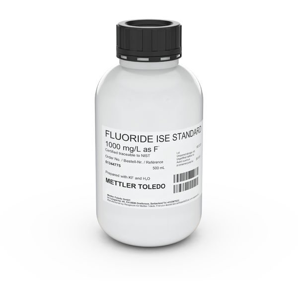 Merek : Mettler Toledo Nomor Katalog : 51344775 Ion : Fluoride Value : 1000 ppm Certification : METTLER TOLEDO Packaging type : Bottle Packaging size : 500 mL Parameter : ISE Purpose : calibration/verification